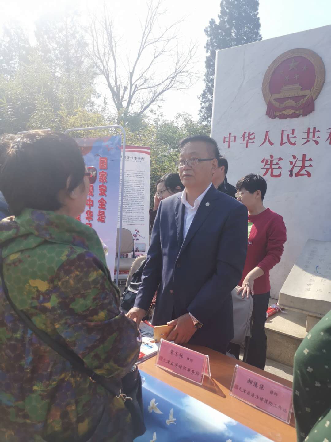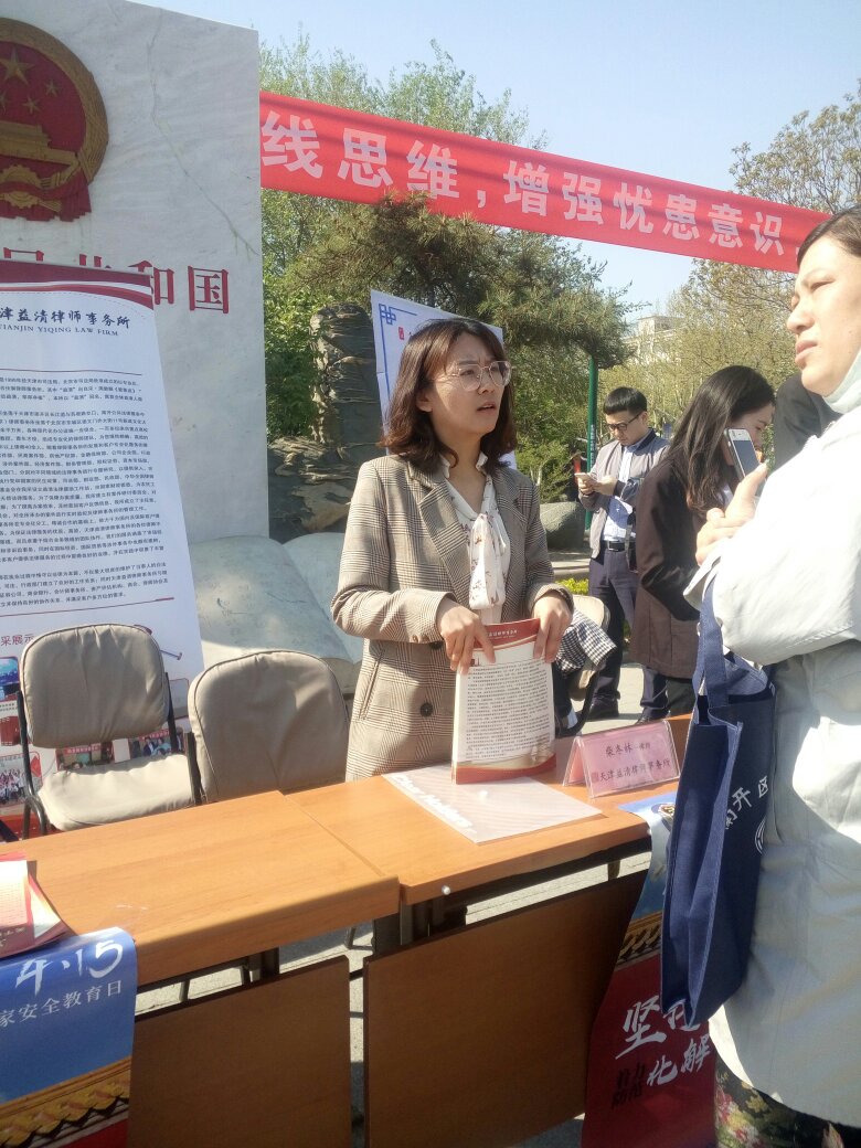 为了加强法制宣传教育,全面推进依法治国,4月15日上午,在南开区长虹公园法治文化园开展“4.15国家安全教育日”普法宣传活动。我所行政管委会柴冬林律师、法律援助站郝慧慧律师应邀参加。