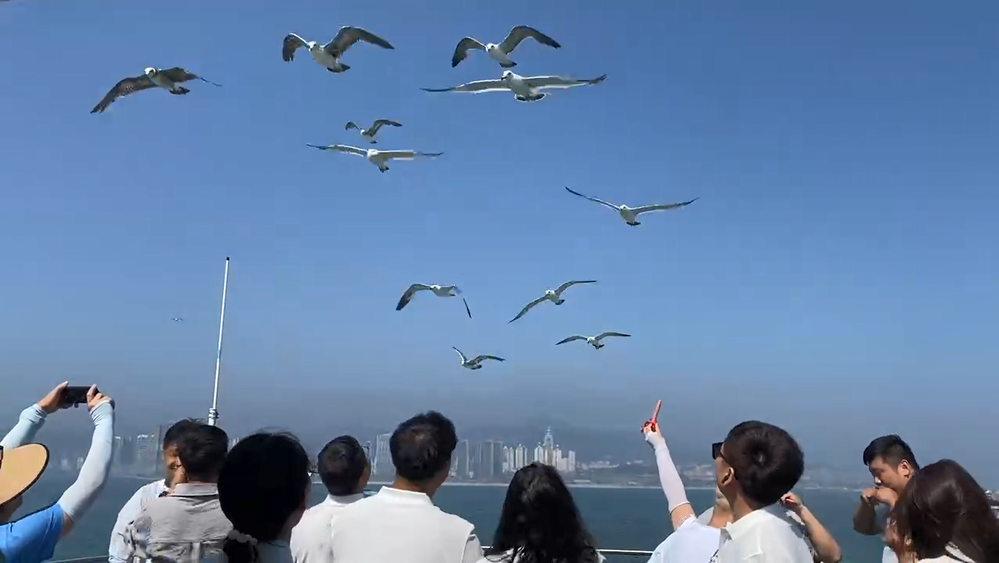 吹着轻柔的海风,赏着加了滤镜一般的碧海蓝天,喂着追逐而来的海鸥,海亦景,天亦景,岛亦景,连喂海鸥的人也成为了一道风景。