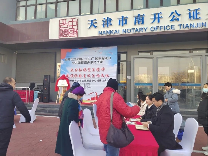 2023年12月4日是第十个国家宪法日,为深入弘扬宪法精神,维护宪法权威,推动宪法全面实施,12月4日上午,由南开区司法局公共法律服务科组织的南开区2023年“12·4”国家宪法日公共法律服务惠民活动在南开公共法律服务中心举办,区司法局、区关工委、南开公证处、南开区法律援助中心、天津益清律师事务所、天津天宏司法鉴定中心参加此次活动。