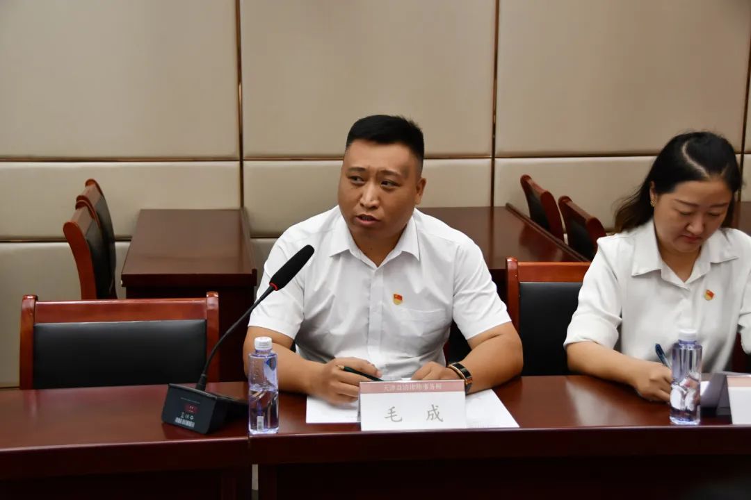 天津益清律师事务所党支部副书记毛成从益清律所的组织架构、发展愿景、党建目标以及建所多年来取得的成绩等方面详细介绍了我所党支部情况并分享党建经验,强调律所主要以党建、团建相结合的模式,增强党支部在律所建设中的凝聚力和向心力。