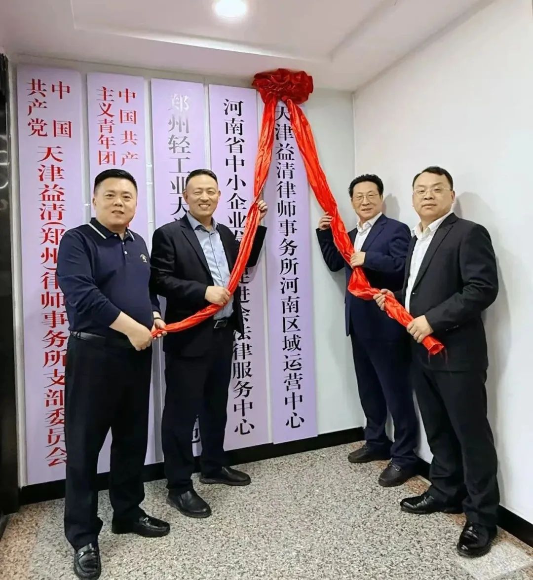 仪式上,益清总所主任韩士队、郑州分所主任陈建伟、副主任酒信阳(轮值主任)、副主任葛瑞共同揭牌“天津益清律师事务所河南区域运营中心”,并宣布由陈建伟兼任运营中心主任。