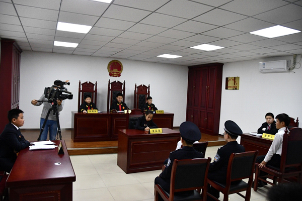 随着“法官”的“法槌”落下,“庭审”正式开始。
