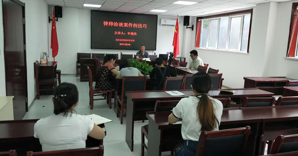 2017年9月16日,由我所案件统筹部部长申德高主讲的“律师洽谈案件的技巧”知识讲座在我所A区一楼会议室顺利召开,我所全体实习律师和部分执业律参加本次知识讲座。