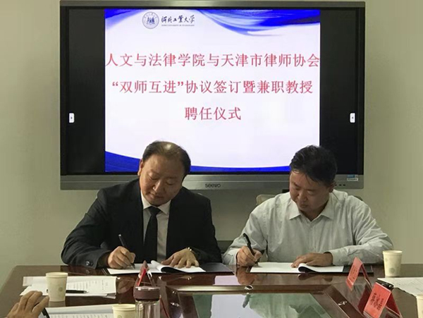 2018年11月28日下午,在河北工业大学学院楼B517会议室举行了“天津市律师协会与河北工业大学‘双师互进’合作签约仪式暨合作座谈会”。