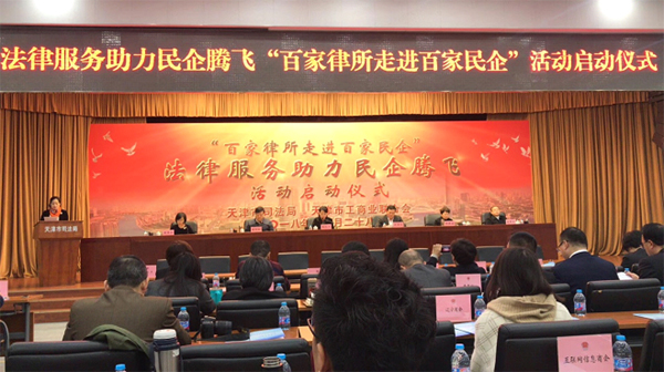 为认真贯彻落实习近平总书记在民营企业座谈会上的重要讲话精神和市委市政府关于促进我市民营企业发展的最新部署要求,结合我市开展的民营企业法治体检专项活动,深入推动律师走进重点民营企业“一对一”提供法治体检和法律服务,11月28日上午,由市司法局举行的“法律服务助力民企腾飞·百家律所走进百家民企”活动启动仪式在天津市司法局报告厅顺利举行。