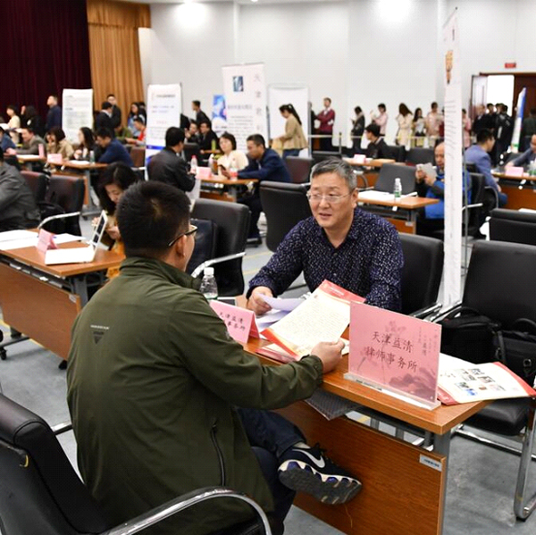 天津益清律师事务所行政管委会主任申德高带队出席了此次招聘会。借助此次活动的平台,益清律师事务所提供包括执业律师、实习律师等多个岗位,吸引了众多人才的问询与简历的投递。通过初步的面试了解,多名优秀的应聘者收到了其相应岗位的复试通知。