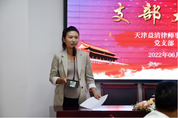 为了坚持和加强党的全面领导,深入落实党要管党、全面从严治党要求,充分发挥党支部的战斗堡垒作用。2022年6月14日下午,天津益清律师事务所组织召开2022年第三次党支部会议。会议根据《中国共产党章程》的有关规定,选举产生新一届中共天津益清律师事务所支部委员会,以及李娜同志被确定为中共预备党员的相关事宜。此次会议由我所党支部纪律委员韩明星主持,我所全体党员、积极分子及入党申请人参加此次会议。