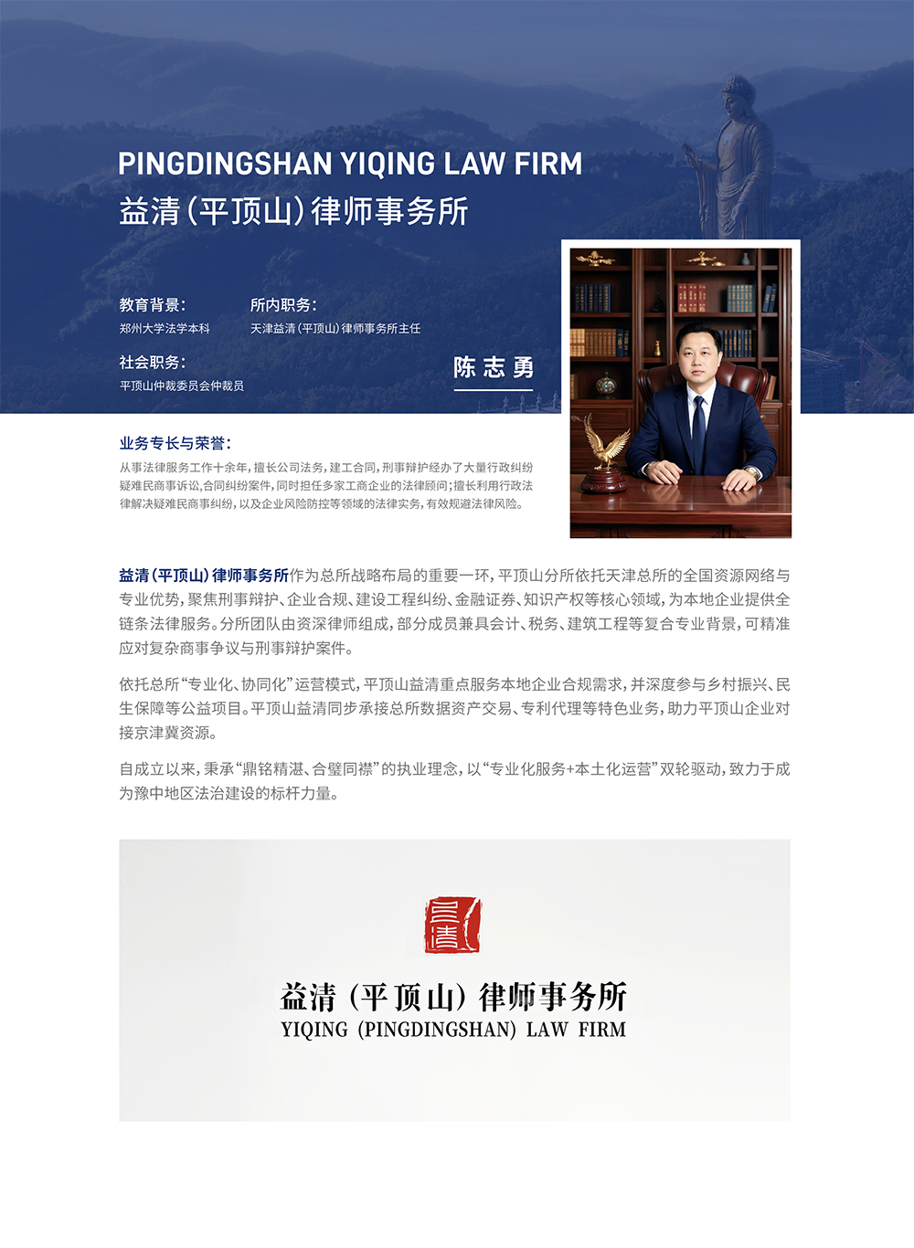 益清(平顶山)律师事务所地址:平顶山市新城区祥云路与公正路交叉口鹰城明珠A地块4号楼,1层107铺、2层207铺 咨询热线:17629659067 邮箱:yiqingpds 126.com