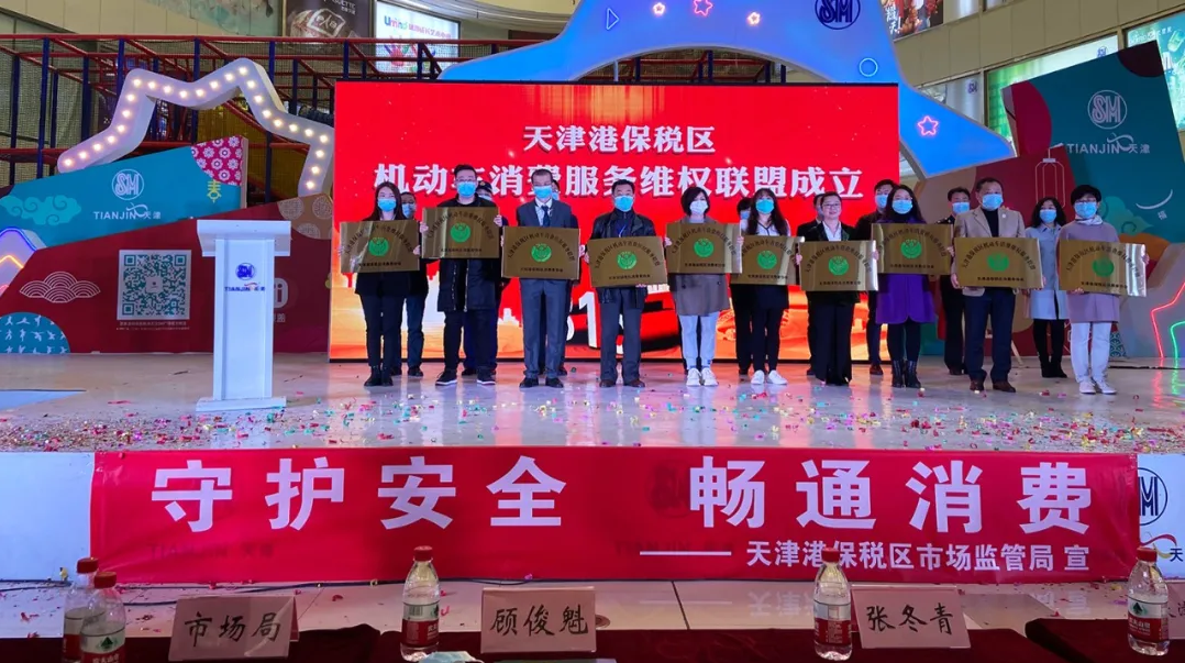 202年3月15日滨海新区首家消费维权服务联盟——天津港保税区机动车消费维权服务联盟(以下简称:联盟)启动仪式在SM商业广场顺利举行。滨海分所主任刘新伟、业务一部律师李晓萌应邀出席会议。