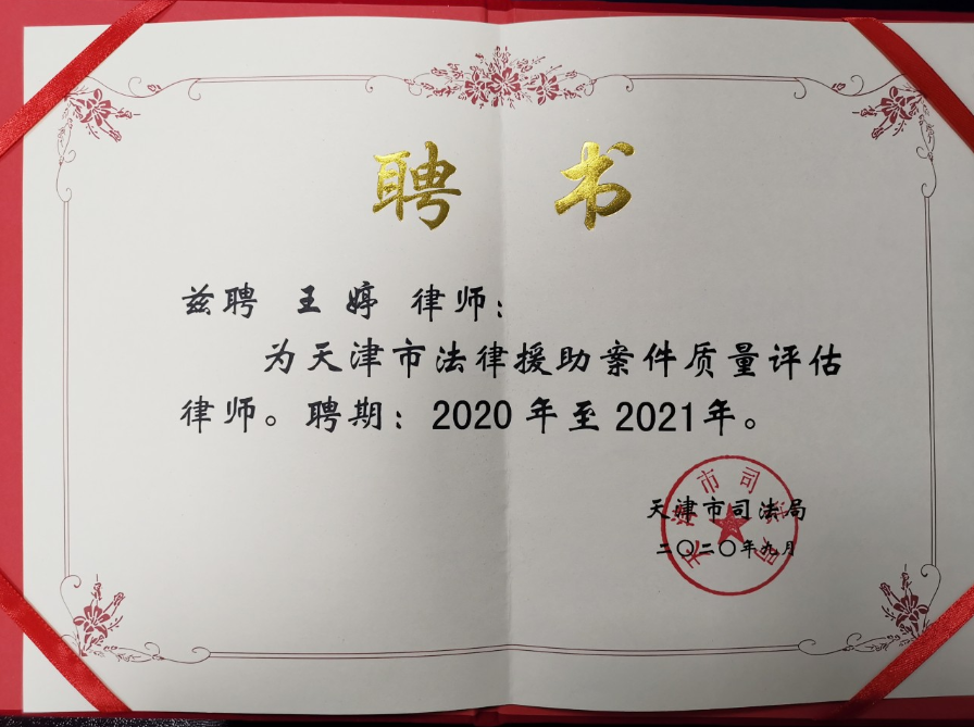 我所王婷律师受邀参加天津市司法局举办的法律援助案件质量评估培训会