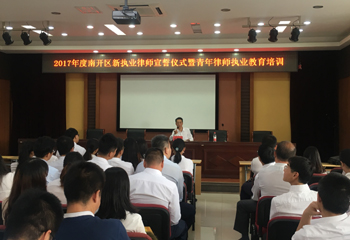 2017年9月4日、6日,在南开区司法局五楼大会议室举办了第一、二期“南开区新执业律师宣誓仪式暨青年律师执业教育培训”。