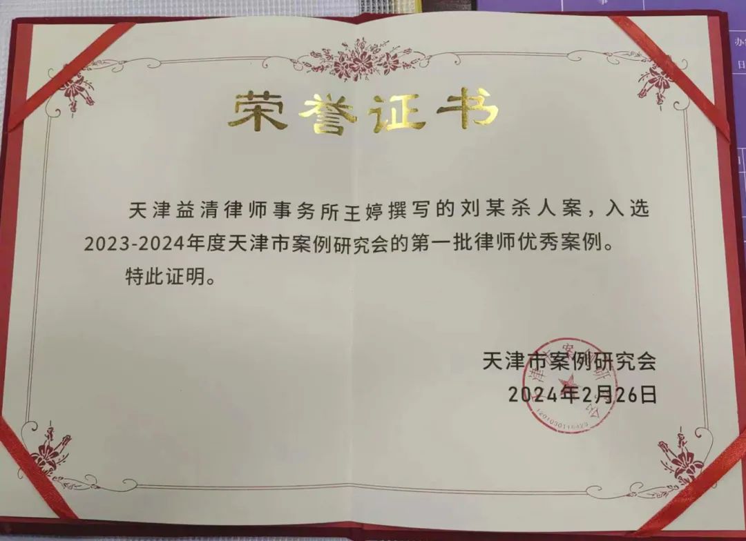 天津益清律师事务所王婷律师代理案件入选2023-2024年度天津市案例研究会的第一批律师优秀案例