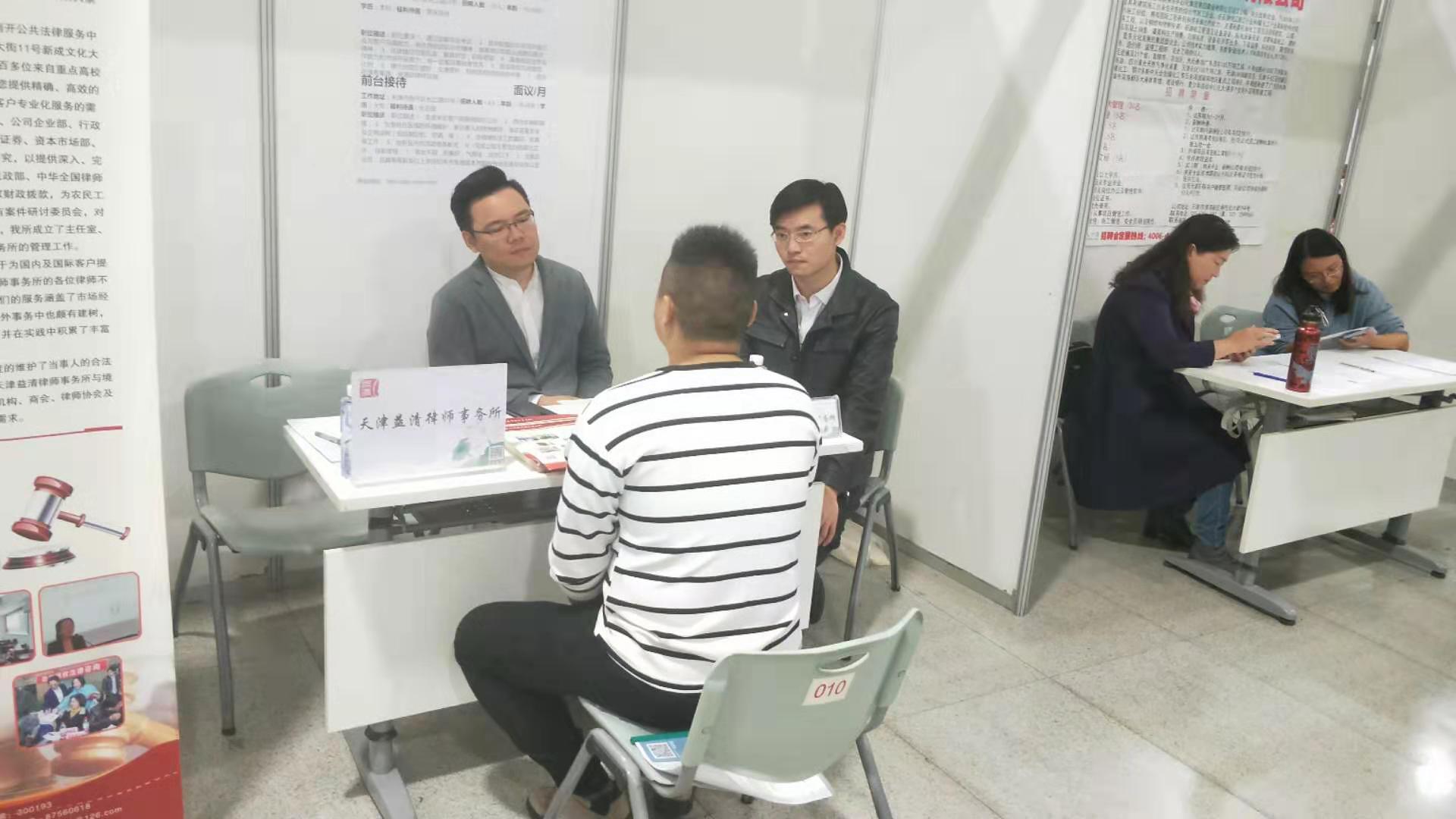 天津益清律师事务所公司企业部部长聂雷强、金融保险部闫世鹏出席了此次招聘会。借助此次活动的平台,天津益清律师事务所提供包括律师助理、前台接待等多个岗位,吸引了众多人才的问询与简历的投递。通过初步的面试了解,多名优秀的应聘者收到了其相应岗位的复试通知。