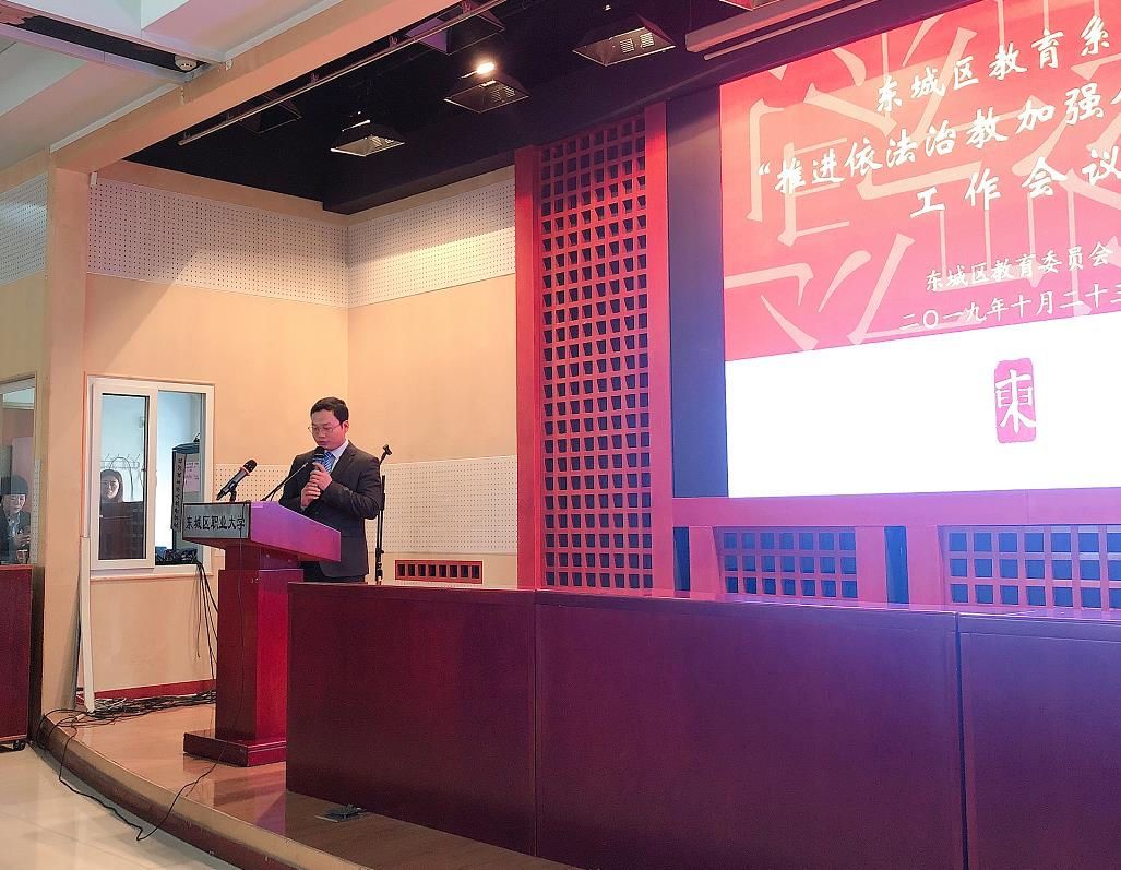 此次会议邀请了东城区司法局副局长郝福杰、东城区教委副主任杨进勇;区教委16个有关科室科长及工作人员;全区154个中小学、幼儿园、职成、直属单位法治工作主管领导;两家学区法律顾问单位相关律师等近200人参加会议。