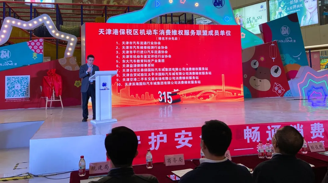 202年3月15日滨海新区首家消费维权服务联盟——天津港保税区机动车消费维权服务联盟(以下简称:联盟)启动仪式在SM商业广场顺利举行。滨海分所主任刘新伟、业务一部律师李晓萌应邀出席会议。