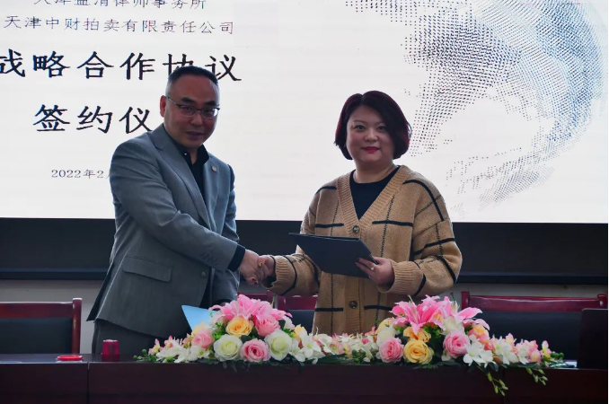 会上,天津中财招商投资集团中财金融广角(天津)拍卖总经理张娟与我所我所合伙人、经济案件部部长张旺就天津中财拍卖有限责任公司与天津益清律师事务所的未来合作事务达成共识,双方本着平等自愿、促进共同发展的原则在我所会议室签署了战略合作协议书。