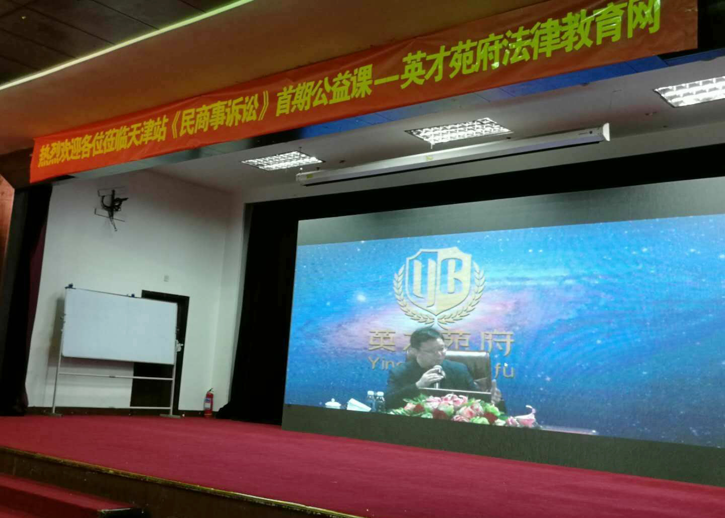 2019年4月13-14日,天津益清律师事务所协同英才苑府法律教育网举办的《民商事诉讼》首期公益课在河东区财富豪为酒店隆重开课。