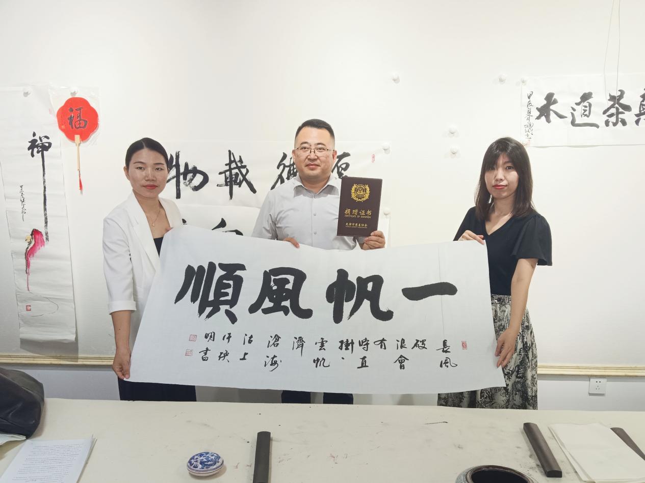 在共忆百年建党史环节,与会党员代表分享了对建党历史的理解与感悟。随后,张康赞老师与广大党员书画爱好者们一起挥毫泼墨、笔走龙蛇,为大家带来了一场视觉盛宴!活动现场气氛热烈而又庄重,书画捐赠环节更是将活动推向了高潮!广大党员纷纷慷慨解囊,捐赠出珍贵的书画作品。中共天津益清律师事务所党支部积极参与捐赠活动,我所韩明星同志作为代表向天津市慈善协会捐赠书法作品一幅,充分展现了我支部无私奉献的精神与高度的社会责任感。